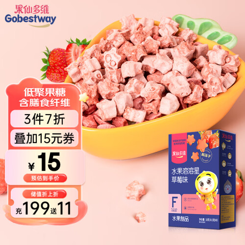 当前的位置: 首页 > 今日值得买 > 果仙多维 水果溶豆 宝宝零食 水果溶溶星 儿童零食 入口即化 草莓味18g