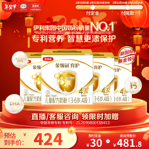 当前的位置: 首页 > 今日值得买 > 伊利金领冠育护【全面营养】儿童奶粉4段(3-6岁)1200g*4整箱装