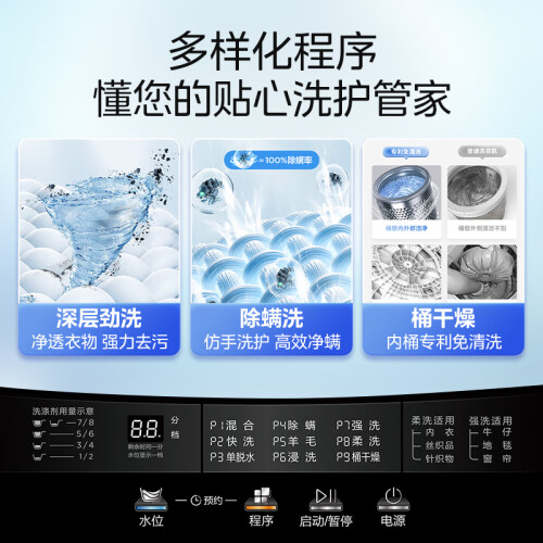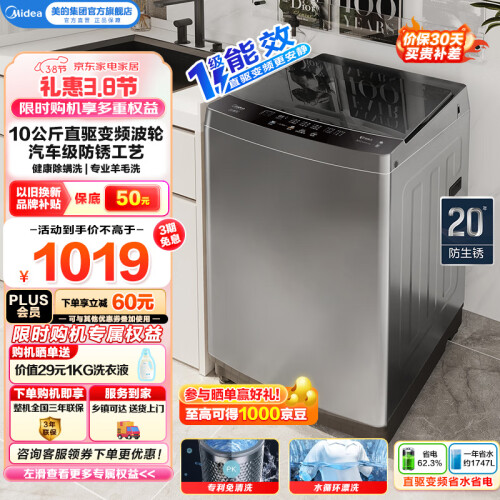 当前的位置: 首页 > 今日值得买 > 美的(Midea)波轮洗衣机全自动10公斤大容量直驱变频电机一级能效V13DB出租房洗衣机小型不占地家电国家补贴20% MB100V13DB