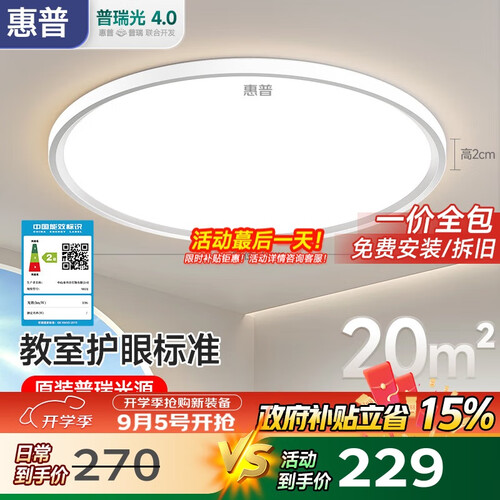 当前的位置: 首页 > 今日值得买 > 惠普普瑞护眼卧室灯吸顶灯LED儿童房书房灯具9031-60瓦适20㎡包安装