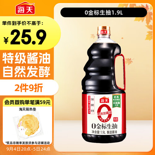 当前的位置: 首页 > 今日值得买 > 海天 金标系列 0金标生抽酱油1.9L【特级酱油】0添加防腐剂