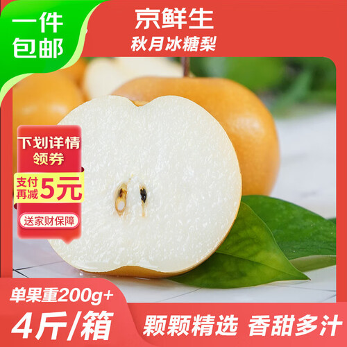 当前的位置: 首页 > 今日值得买 > 京鲜生 正宗莱阳秋月梨净重4斤 单果200g+ 一级果 生鲜水果 源头直发