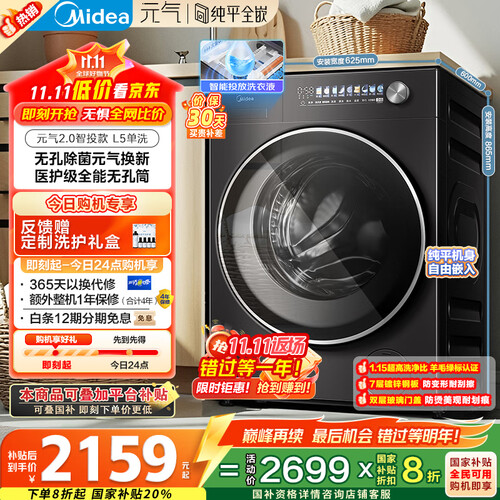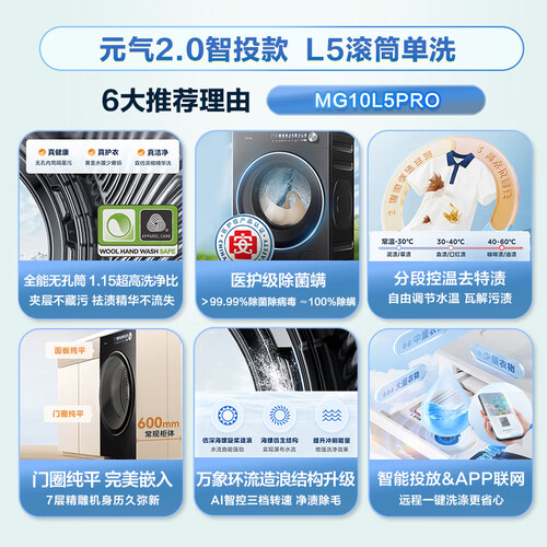 当前的位置: 首页 > 今日值得买 > 美的(Midea)滚筒洗衣机全自动家用 MG10L5PRO 10公斤纯平全嵌 1.15洗净比 元气2.0 以旧换新 家电国家补贴20%