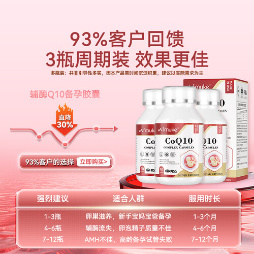 当前的位置: 首页 > 今日值得买 > FMUKE美国进口还原型辅酶Q10备孕dha改善卵子质量孕前调理卵巢90粒/瓶