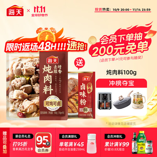 当前的位置: 首页 > 今日值得买 > 海天炖肉料100g17种配料 八角大料卤料包 卤肉酱牛肉香料包调料调味品 【20斤肉】炖肉料100g(10g*10)