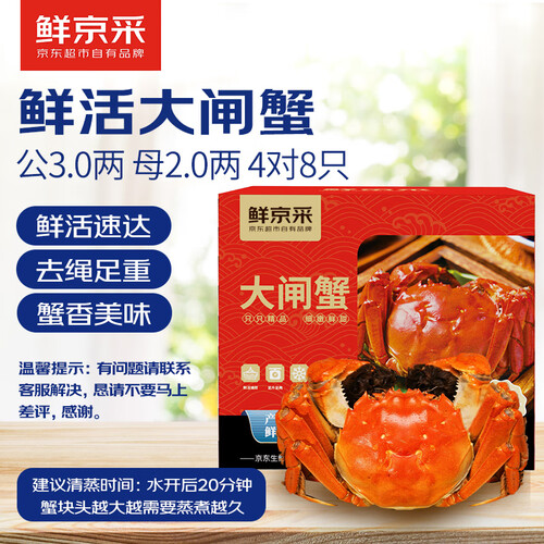 当前的位置: 首页 > 今日值得买 > 【活蟹】鲜京采 鲜活大闸蟹 公蟹3两 母蟹2两 4对8只 去绳足重 蟹类螃蟹河蟹生鲜礼盒