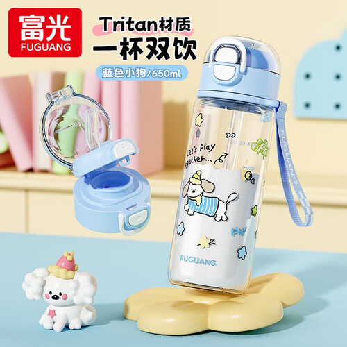 当前的位置: 首页 > 今日值得买 > 富光水杯女生高颜值学生大容量Tritan杯子便携塑料水壶吸管儿童水杯 蓝色【一盖双饮+提绳】650ml