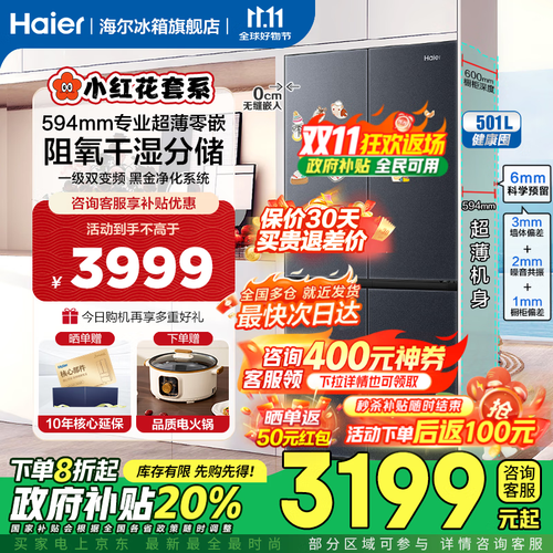 当前的位置: 首页 > 今日值得买 > 海尔(Haier)【小红花系列】冰箱501升四开门十字对开门60cm内专业超薄零嵌入式一级能效双变频国家补贴电冰箱 501L+健康黑金净化+阻氧干湿分储+WiFi智控
