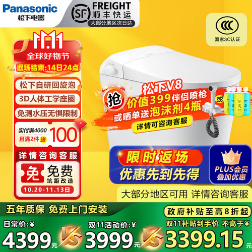 当前的位置: 首页 > 今日值得买 > 松下(Panasonic)智能马桶V8回旋泡沫盾一级水效全自动感应距离可调坐便器 V8一级水效回旋炮感应开盖可调 300/400mm