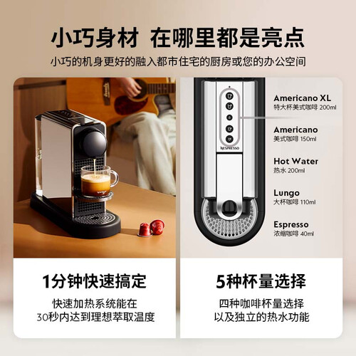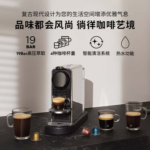 当前的位置: 首页 > 今日值得买 > Nespresso【京东11.11】奈斯派索胶囊式啡机小型家用全自动商用办公室高压萃取不锈钢热水功能多种杯量意式 Citiz platinum银色
