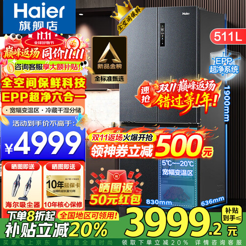 当前的位置: 首页 > 今日值得买 > 海尔(Haier)【25年旗舰新品】冰箱511升全空间保鲜十字四开门家用一级能效双变频风冷无霜大容量以旧换新 全空间保鲜科技+EPP超净系统+宽幅变温区