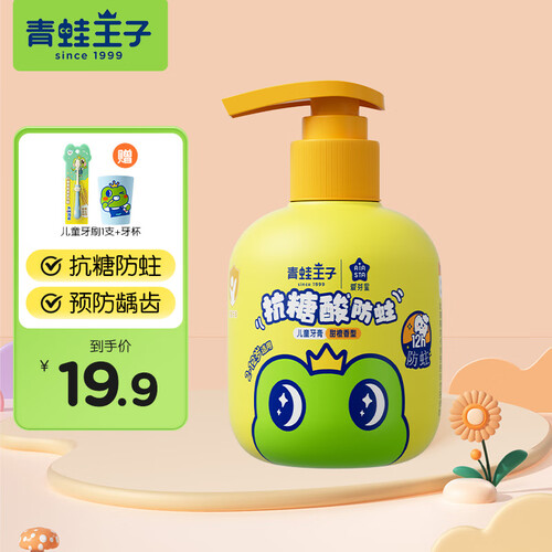 当前的位置: 首页 > 今日值得买 > 青蛙王子(FROGPRINCE)抗糖酸儿童牙膏 宝宝学生青少年按压牙膏3-12岁24h防蛀护齿防龋齿 【甜橙味】抗糖酸牙膏150g
