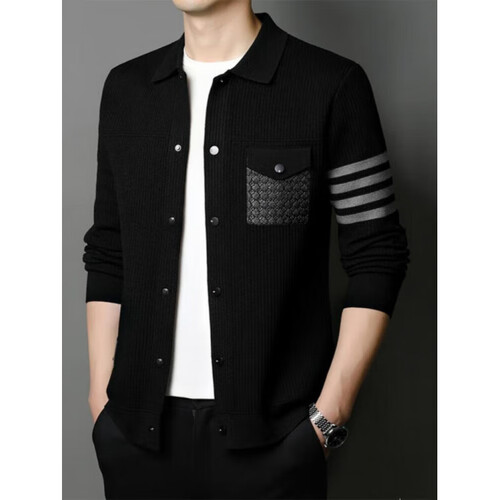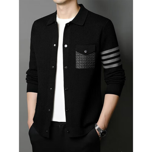 当前的位置: 首页 > 今日值得买 > AX阿玛尼 春秋季新款翻领针织夹克男士个性皮口袋上衣休闲男装外套 黑色ZG -A4076 L