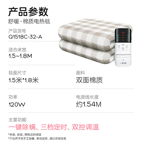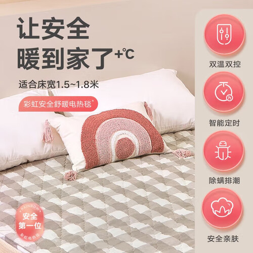 当前的位置: 首页 > 今日值得买 > 彩虹电热毯电褥子(宽1.8/1.5/1.0米)双控排潮定时除螨电暖床电热毯 定时除螨 长1.8米宽1.5米 双面棉