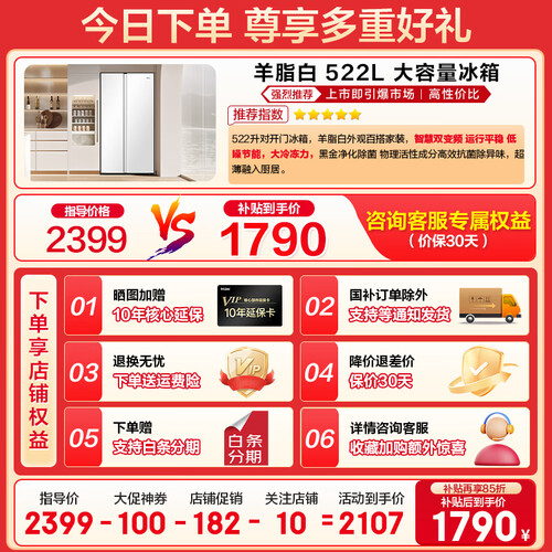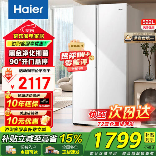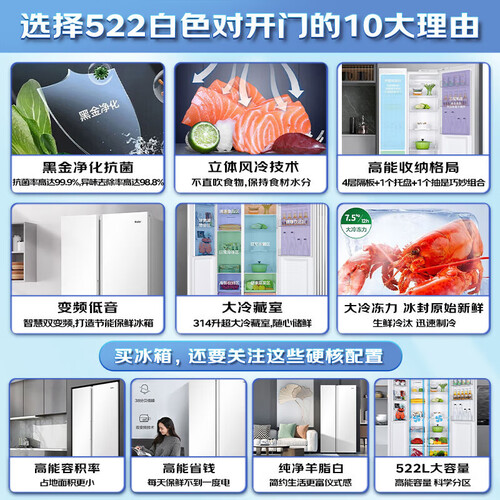 当前的位置: 首页 > 今日值得买 > 海尔(Haier)冰箱522升超薄机身双开门对开门白色风冷无霜双变频净味保鲜智能省电大容量家用电冰箱国家补贴15% 522升+黑金净化
