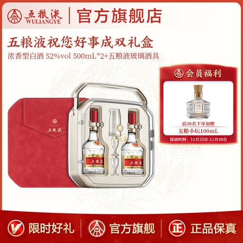 当前的位置: 首页 > 今日值得买 > 五粮液【官方旗舰】第八代五粮液祝您好事成双礼盒 52度 500mL 2瓶