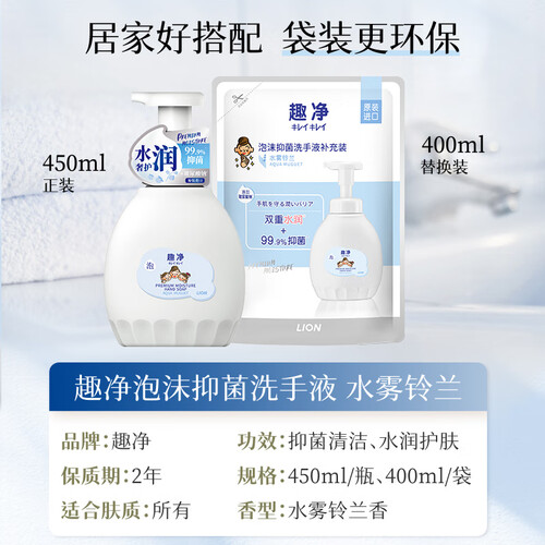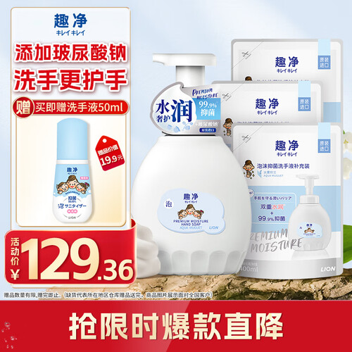 当前的位置: 首页 > 今日值得买 > 狮王(Lion) 趣净泡沫抑菌洗手液水雾铃兰450ml+400ml*3含玻尿酸钠水润