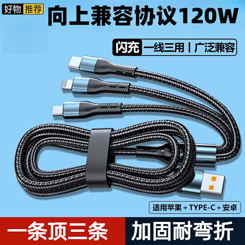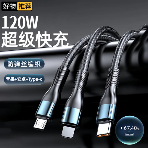 当前的位置: 首页 > 今日值得买 > drop dot【66W超级快充丨线加粗80%】数据线三合一6A苹果安卓充电器线Type-C一拖三多合一华为小米手机车载 1.2米【编织线】黑色