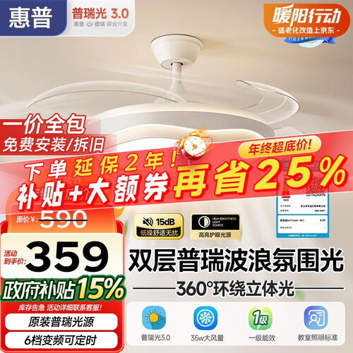 当前的位置: 首页 > 今日值得买 > 惠普风扇灯普瑞led护眼隐形吊扇灯奶油风中山灯具餐厅卧室灯扇包安装