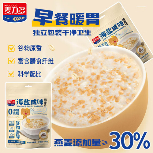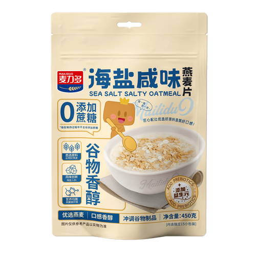 当前的位置: 首页 > 今日值得买 > 麦力多海盐咸味燕麦片450g 添加益生元 营养早代餐即食冲饮谷物无添蔗糖 【新颖美味】海盐燕麦片450g(30g*15袋)