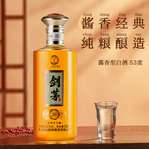 当前的位置: 首页 > 今日值得买 > 剑茅府国标酱香20 钓台集团出品酿酒 酱香型白酒 53%vol 500mL 1瓶 礼盒装