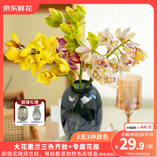 当前的位置: 首页 > 今日值得买 > 京东鲜花大花蕙兰鲜切花3支三色送花瓶混色元旦氛围感鲜花家庭源头直发