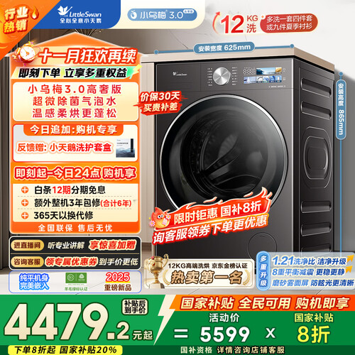 当前的位置: 首页 > 今日值得买 > 小天鹅(LittleSwan)滚筒洗衣机全自动家用 带烘干洗烘一体【小乌梅3.0高奢版 TD12VE40PRO】家电国家补贴20% 以旧换新