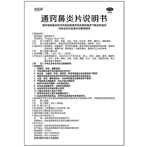 当前的位置: 首页 > 今日值得买 > [恒医森]通窍鼻炎片 0.3g*60片 1盒装 15片*4板 过敏性鼻炎 慢性鼻炎 鼻塞 鼻窦炎 鼻流涕 中药配方