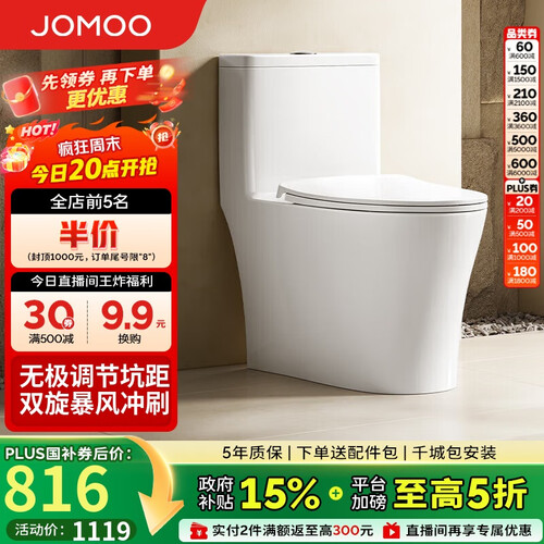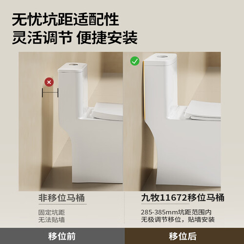 当前的位置: 首页 > 今日值得买 > 九牧(JOMOO)11672-2-1/01K-1普通马桶家用直冲节水坐便器285-385坑距可调节