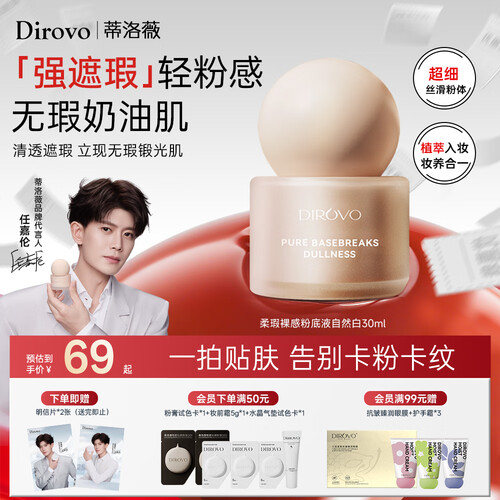 当前的位置: 首页 > 今日值得买 > 蒂洛薇(DIROVO)【任嘉伦同款】粉底液遮瑕不脱妆油皮保湿粉霜精华养肤干皮不卡粉