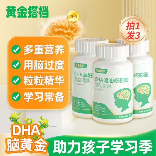 当前的位置: 首页 > 今日值得买 > 黄金搭档DHA藻油核桃油 儿童青少年中小学生孕妇脑营养dha记忆凝胶糖210粒
