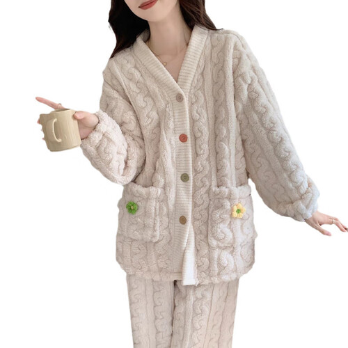 当前的位置: 首页 > 今日值得买 > 宝娜斯(BONAS)冬季加厚珊瑚绒毛毛睡衣女可外穿开衫两件套装纯色长袖长裤家居服 粉色小花 均码
