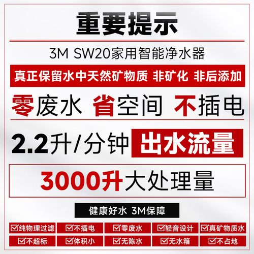 当前的位置: 首页 > 今日值得买 > 3M厨下式 净水器家用 0废水 直饮智能 矿物质2.2升的大流量净水机 净饮机 sw29升级为sw20不含阻垢剂 SW20(升级不含阻垢剂)
