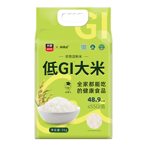当前的位置: 首页 > 今日值得买 > 太粮低GI大米 糖尿控糖低升糖 低脂减脂健身 健康孕妇 当季新米 【绿色健康】低糖低脂大米 5kg*1袋