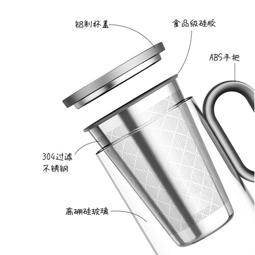 当前的位置: 首页 > 今日值得买 > 尚明(SAMADOYO)铝盖高硼硅玻璃泡茶杯过滤茶杯茶水分离办公家用大容量透明茶杯 枪黑色500ML