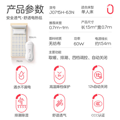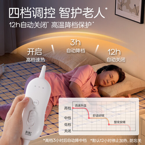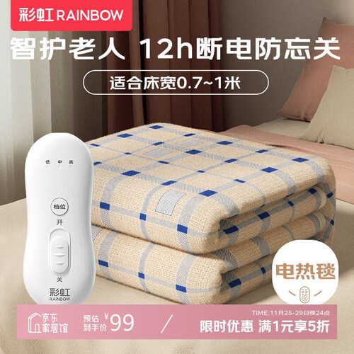 当前的位置: 首页 > 今日值得买 > 彩虹单人自动断电防忘关四档调控低功率无纺布电热毯电褥子1.5*0.7米