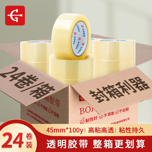 当前的位置: 首页 > 今日值得买 > 永冠【高性价比箱装胶带24卷】透明胶带封箱封口快递打包宽胶带货物工厂仓库搬家45mm*100y(91.4m)