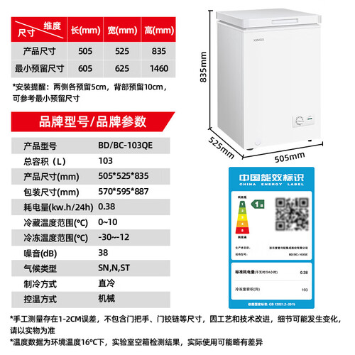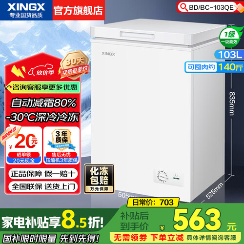 当前的位置: 首页 > 今日值得买 > 星星(XINGX)无霜冰柜300升/200升大容量 -30℃速冻超低温速冻冷柜 商用冰柜冷藏冷冻两用单温 冷冻柜一级能效 103升 【自动减霜80%】低温速冻103QE
