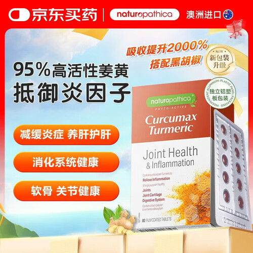 当前的位置: 首页 > 今日值得买 > NATUROPATHICA姜黄素黑胡椒精华片95%高活性养肝护肝 减缓炎症消化关节养护熬夜 黑胡椒姜黄80粒【日常养护】