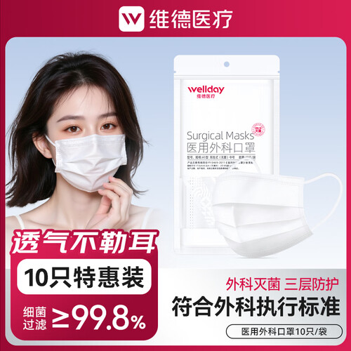 当前的位置: 首页 > 今日值得买 > 维德(WELLDAY)一次性医用外科口罩防护三层无菌级防细菌防飞沫轻薄透气挂耳式 医用外科灭菌级-白色【10只】
