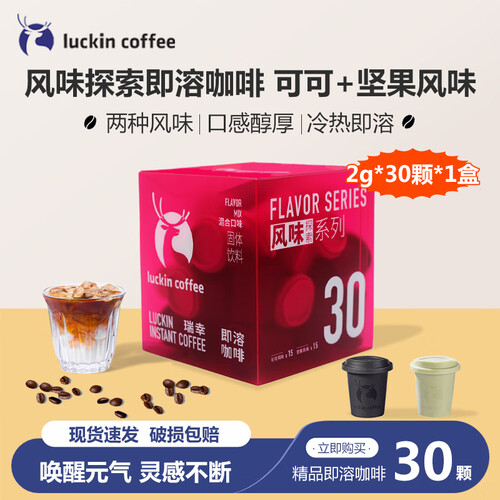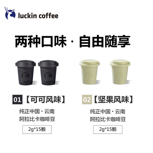 当前的位置: 首页 > 今日值得买 > 瑞幸咖啡(luckincoffee)即溶咖啡风味探索系列冻干咖啡冷萃速溶独立小罐 可可味2g*15颗+坚果味2g*15颗