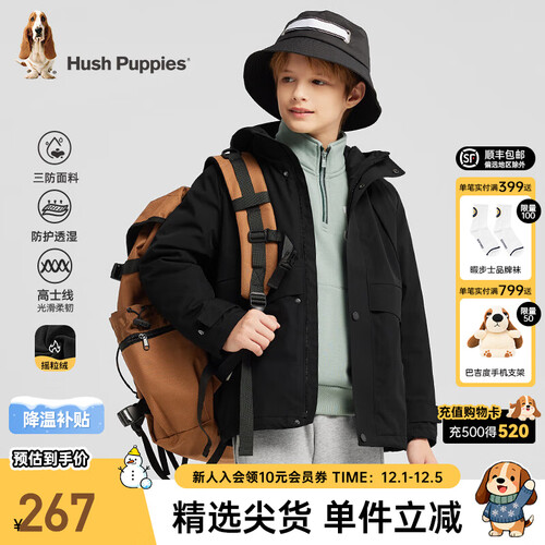 当前的位置: 首页 > 今日值得买 > 暇步士(Hush Puppies)童装儿童男女大童秋冬三防摇粒绒保暖简约质感儿童厚风衣 钻石黑 105