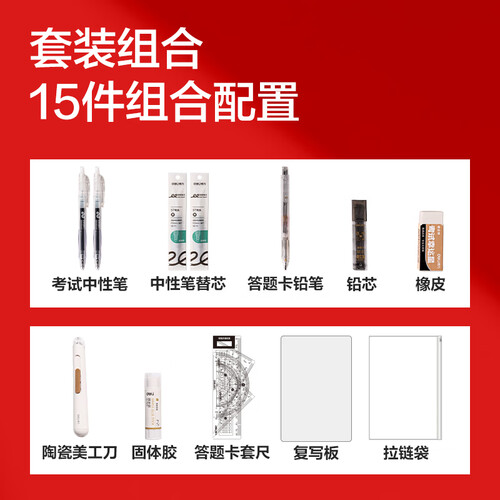 当前的位置: 首页 > 今日值得买 > 得力(deli)15件套考试专用套装中性笔套尺垫板铅笔橡皮陶瓷美工刀固体胶考研考公考编专用快速入考场文具礼盒