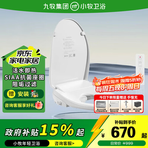 当前的位置: 首页 > 今日值得买 > 九牧(JOMOO)智能马桶盖小牧卫浴全自动遥控暖风烘干活水即热智能坐便盖盖板 S3安装孔距【125-215mm】