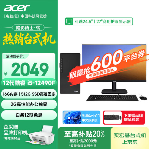 当前的位置: 首页 > 今日值得买 > 宏碁(acer)暗影骑士·崭 i3/i5/i7系列商用办公高性能定制台式电脑主机整机 AMD商用主机显示器全套 爆款 i5-12490F 16G 512G 独显 单主机