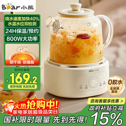 当前的位置: 首页 > 今日值得买 > 小熊(Bear)全玻璃壶体养生壶恒温壶 办公室多功能煮茶壶花茶壶 0金属养生杯 24h预约24h保温 1L YSH-P10Q7