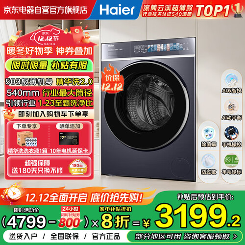 当前的位置: 首页 > 今日值得买 > 海尔(Haier)云溪4.0极致超薄款滚筒洗衣机全自动纯平嵌大容量一级能效540大筒精华洗家电补贴XQG100-SDE588BU1