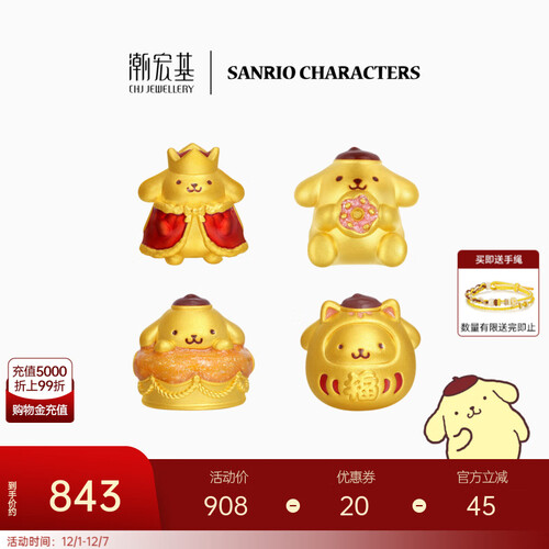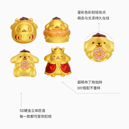 当前的位置: 首页 > 今日值得买 > 潮宏基 三丽鸥布丁狗黄金转运珠女足金珠子小版正版联名可DIY手链手绳TK 甜甜圈布丁狗(小版)
