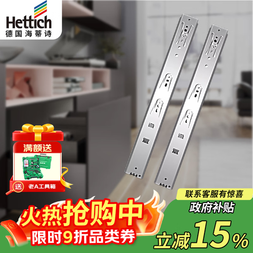 当前的位置: 首页 > 今日值得买 > 海蒂诗(Hettich)滑轨抽屉轨道阻尼缓冲滑轨加厚三节橱柜滑道导轨 KA5632 银色300mm=12寸