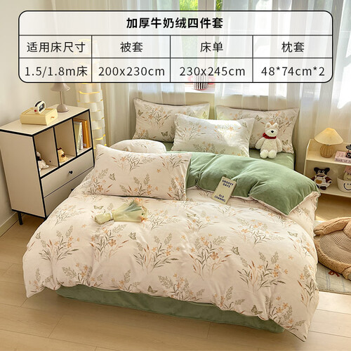 当前的位置: 首页 > 今日值得买 > 名创优品(MINISO)牛奶绒四件套床上用品加绒加厚床单被套200x230cm1.5/1.8米